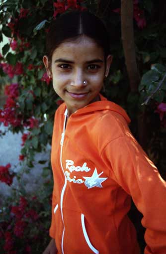 ラジャスタニドレスを着てみ、と半ば無理やり着せられる。